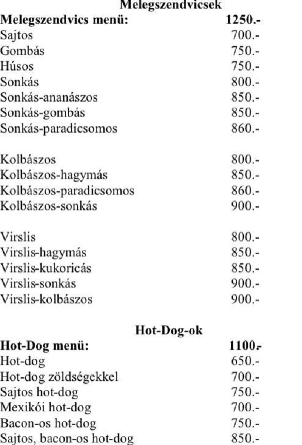 Konyhánk által frissen elkészített hagyományos magyar ételkülönlegességekkel várjuk Önt. Házi konyhánk és saláta büfénk még a legkifinomultabb ízléssel rendelkező vendégeinknek is tartják ízletes ételeket. Feltétlenül kóstolja meg a nagyon finom rántott szeletjeinket vagy levesünket valamint forró teáinkat vagy hideg frissítő italainkat. Délután gyakran betérnek hozzánk a vendégek a friss palacsintáink miatt!